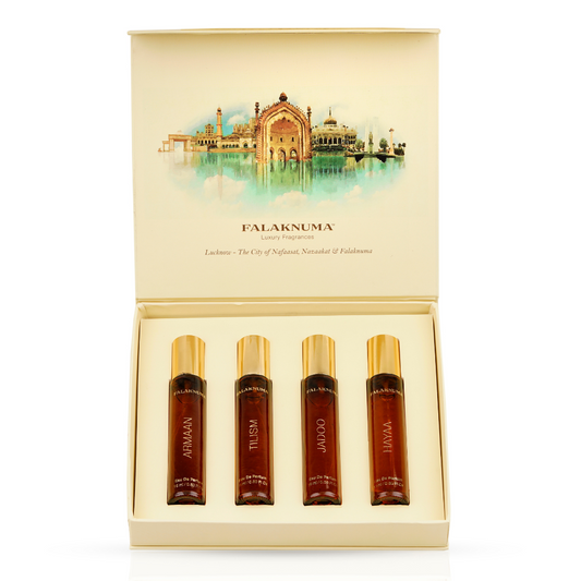 An exquisite Gifting Range by Sugandhco - the ideal gift for every occasion. Lucknow's rich Heritage and Elegance have always inspired us to create gifting options that reflect Luxury and Warmth. For customizations and bulk orders please email us at care@scentkart.in