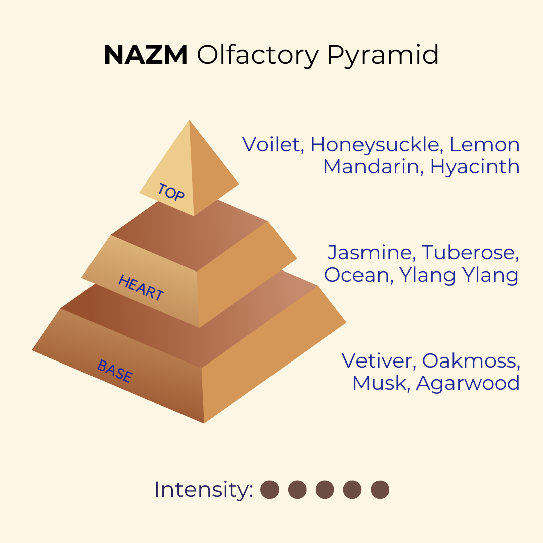 Introducing Nazm, an enchanting floral bouquet that captures the essence of nature's most exquisite blossoms. Like a poet's verses, this perfume weaves together a symphony of scents that dance harmoniously, unveiling a captivating olfactory journey.