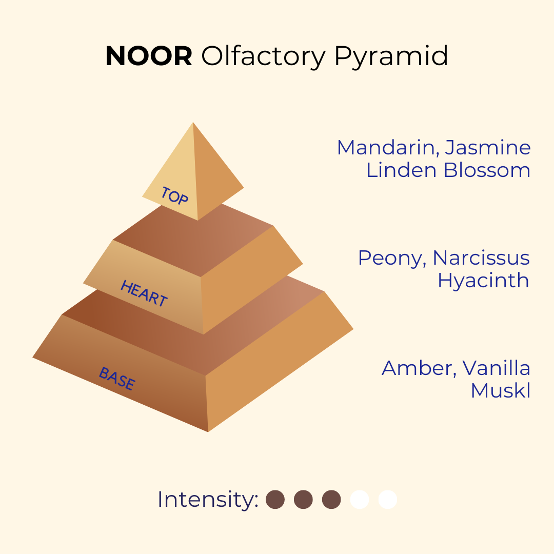Noor is a mesmerizing fragrance that captures the essence of jasmine and apple in a stunning olfactory composition. Its top notes of jasmine, apple, mandarin, and linden blossom create a fresh and invigorating opening that immediately captures your attention.
